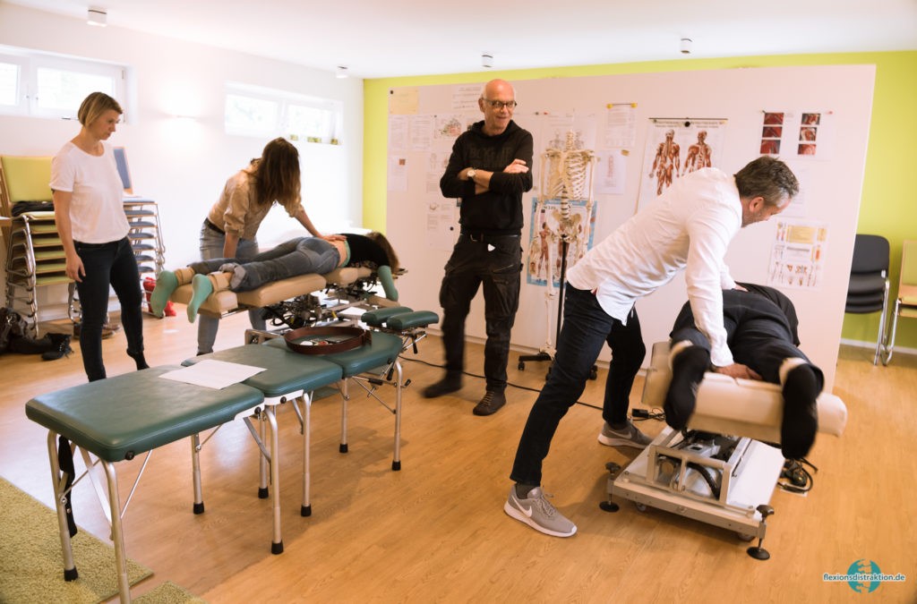Die Flexionsdistraktion ist in den USA die zweithäufigste Methode, die von den Chiropraktikern zur Therapie eingesetzt wird. Das Erlernen dieser Methode ist dort ein essentieller Bestandteil der Ausbildung zum Chiropraktiker. Die meisten Rückenerkrankungen können mit dieser Therapieform effektiv behandelt werden, wobei diese Therapie bei richtiger Indikation keine ernsthaften Risiken beinhaltet. In unseren Seminaren werden die Grundlagen für den praktischen Umgang mit der Flexionsdistraktionsliege vermittelt, als auch der Einstieg, für den Einsatz der Therapie bei spezifischen Rückenerkrankungen.